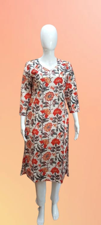 Add a touch of traditional elegance to your wardrobe with this Red Kurti adorned with all-over brown Shanku (conch shell) designs. Crafted from soft, breathable fabric, it combines style and comfort effortlessly. The intricate motifs give it a timeless charm, making it perfect for casual outings, office wear, or festive occasions. Pair it with matching bottoms and understated accessories for a refined and graceful look.