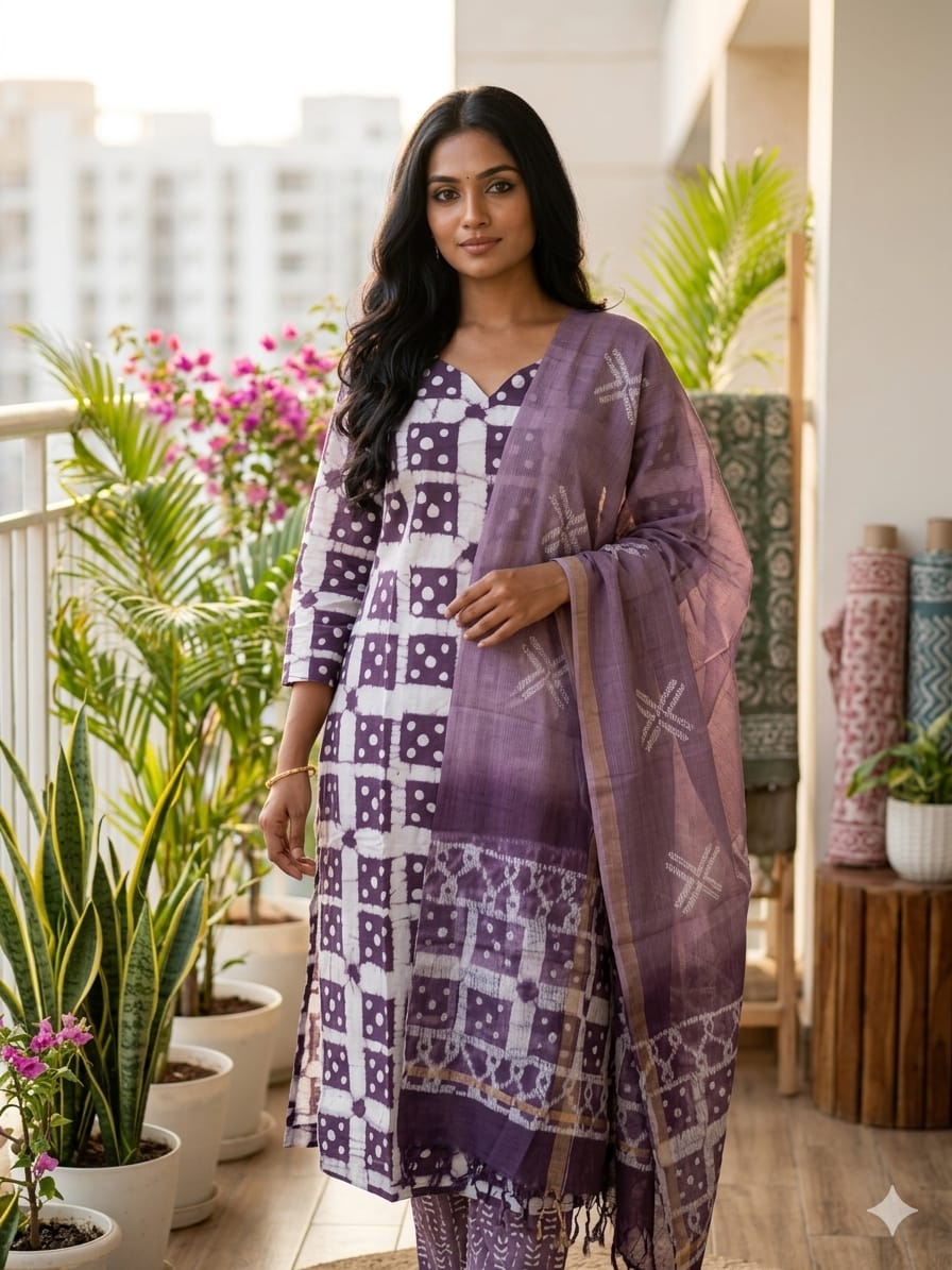 This elegant grey kurta set features stylish geometric prints paired with a matching dupatta for a complete ethnic look. The balanced design and subtle colors make it a great choice for workwear, small gatherings, or daily ethnic fashion.