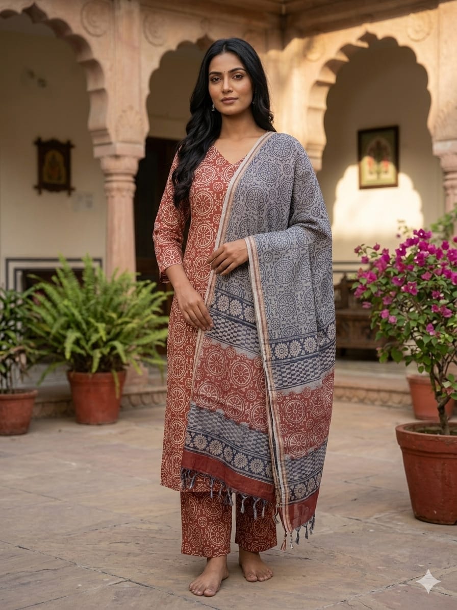 Add vibrant charm to your ethnic collection with this stylish red and white printed kurta set. The traditional patterns paired with a matching dupatta create a graceful and elegant look. Crafted from comfortable breathable fabric, this outfit is perfect for festive gatherings and casual celebrations.